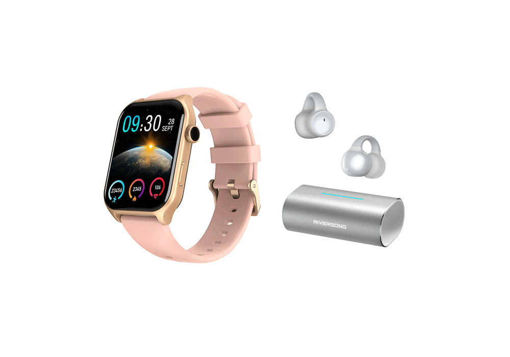 Riversong Smartwatch Motive 9E Rose Gold + Riversong True Wireless AirClip L3 Silver