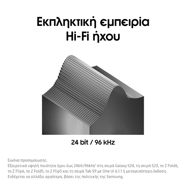 “Απόλαυσε εκπληκτική ποιότητα ήχου στα νέα Galaxy Buds3. Το Samsung Seamless Codec διατηρεί τα επίπεδα υψηλής πιστότητας 24bit / 96kHz, για να ακούς ακόμη και τις λεπτομέρειες.