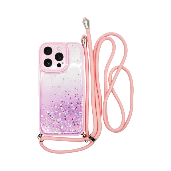 Vivid Bling Glitter with Stars Case and lanyard Apple iPhone 16 Pro Pink