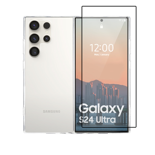 Vivid Set Gelly Case + Full Face Tempered Glass Samsung Galaxy S24 Ultra Black
